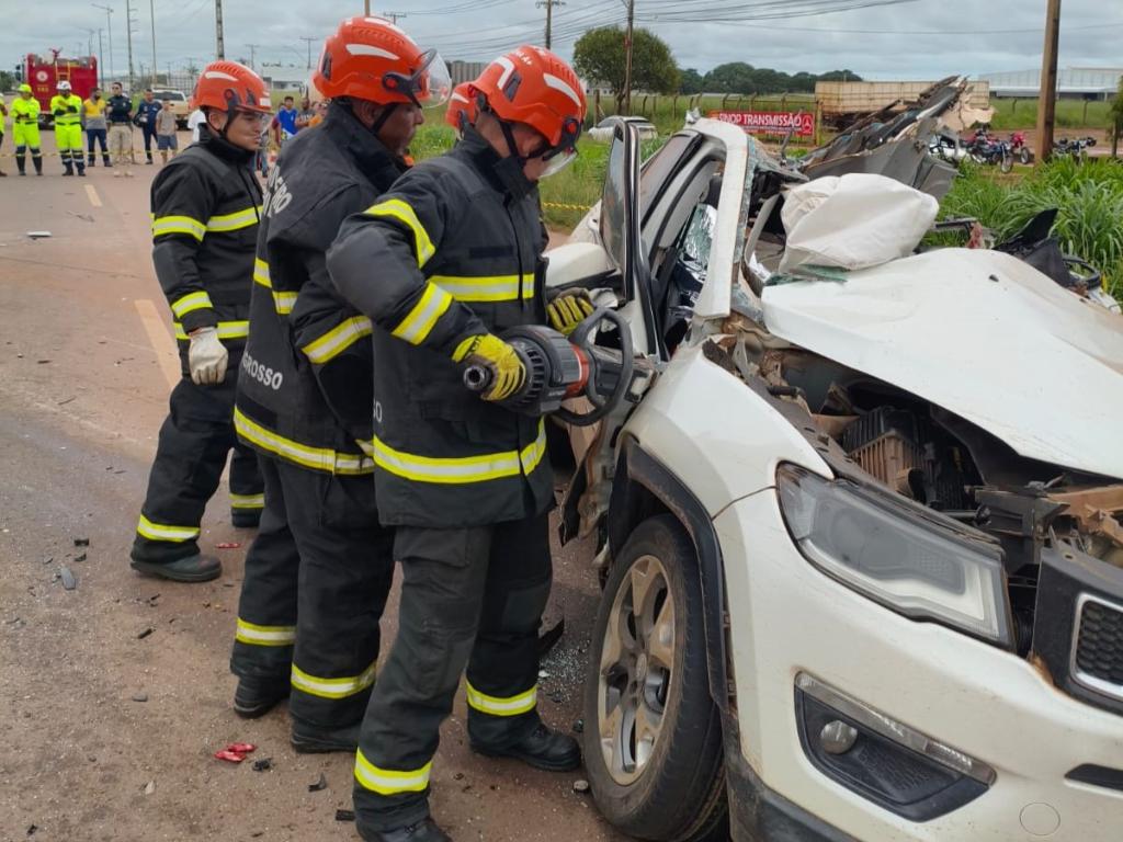 O Corpo de Bombeiros Militar de Mato Grosso (CBMMT) realizou, na manhã de quinta-feira (2.4), o desencarceramento de duas vítimas de um acidente de trânsito envolvendo um carro de passeio e um caminhão baú, no perímetro urbano da BR-163, em Sinop (480 km de Cuiabá).